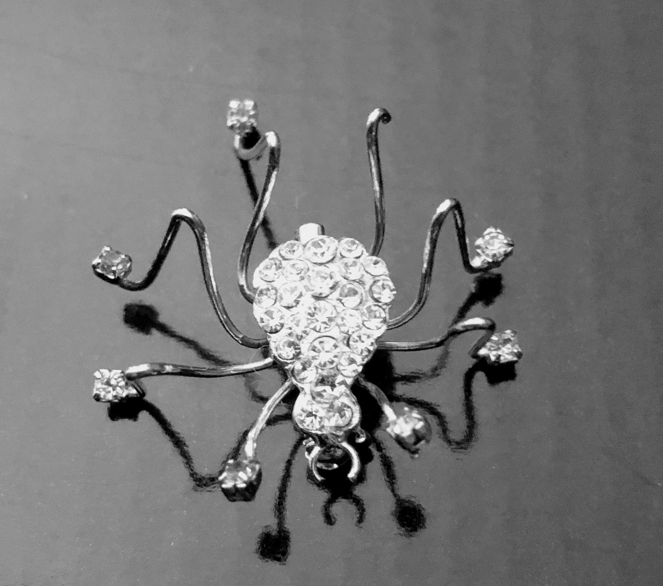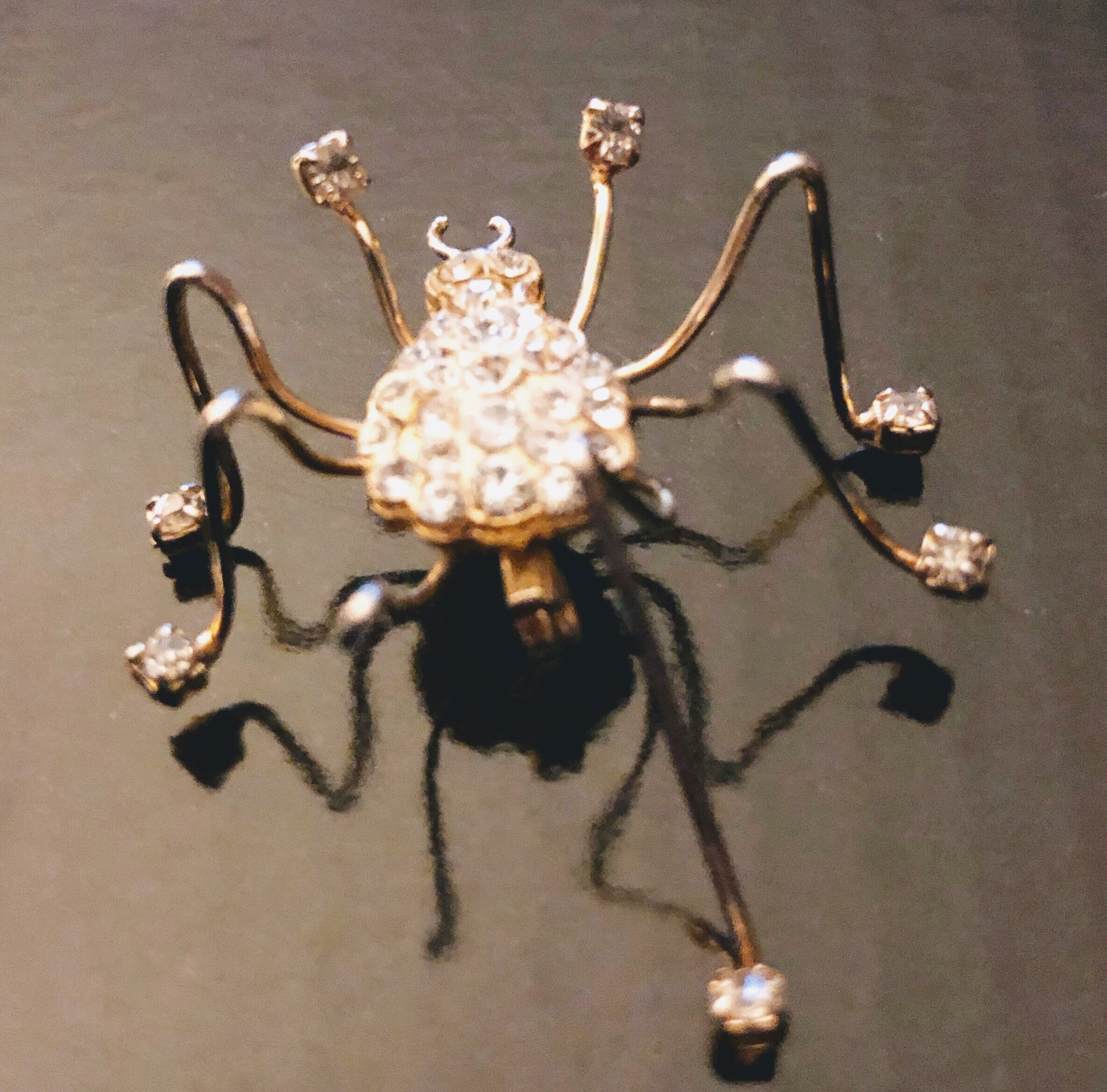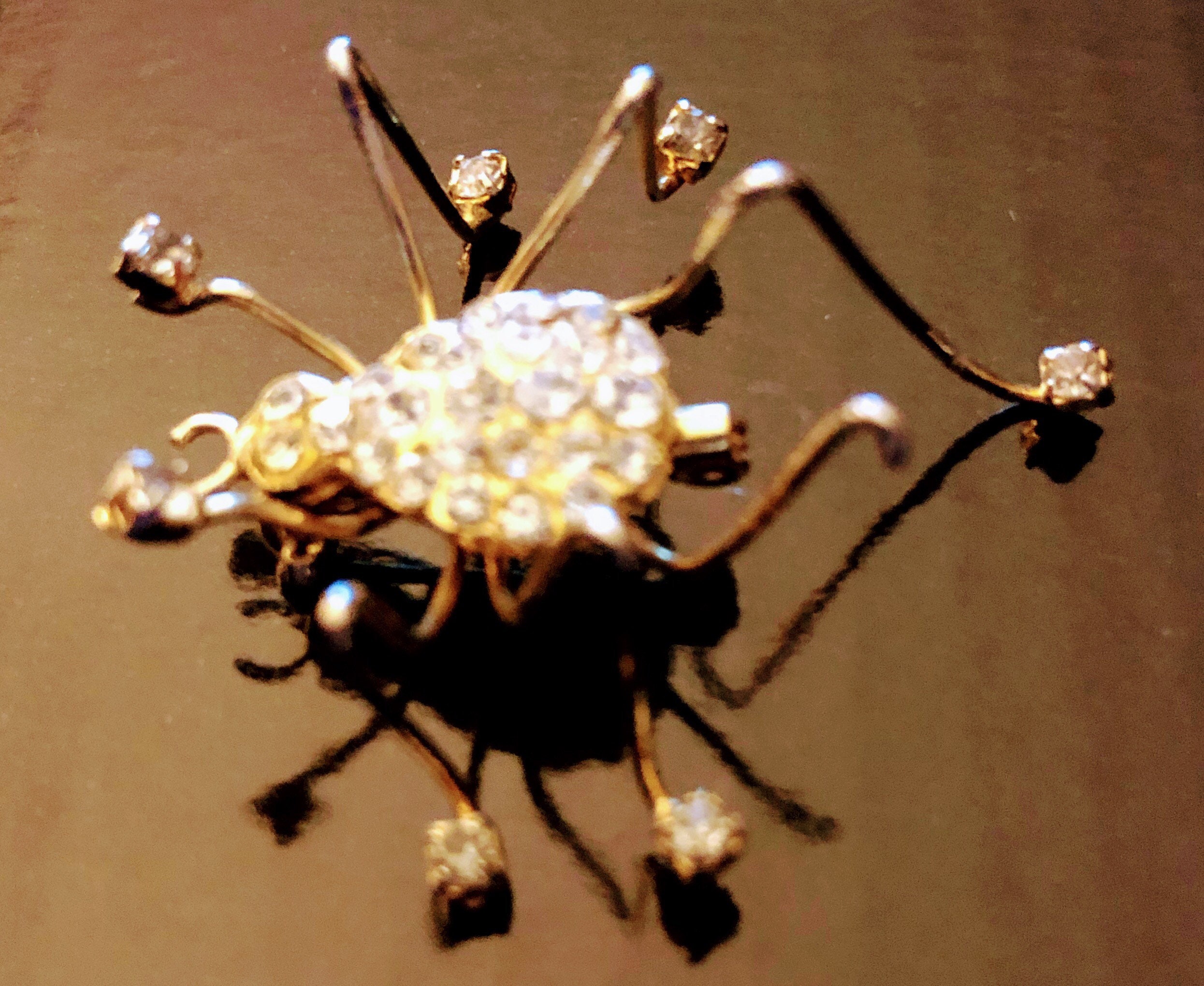 Spider Rhinestones Unique Vintage~Pin for spider lover or Halloween its a unique pin~ Vintage 70. back has a a regular gold clasp see pictures.